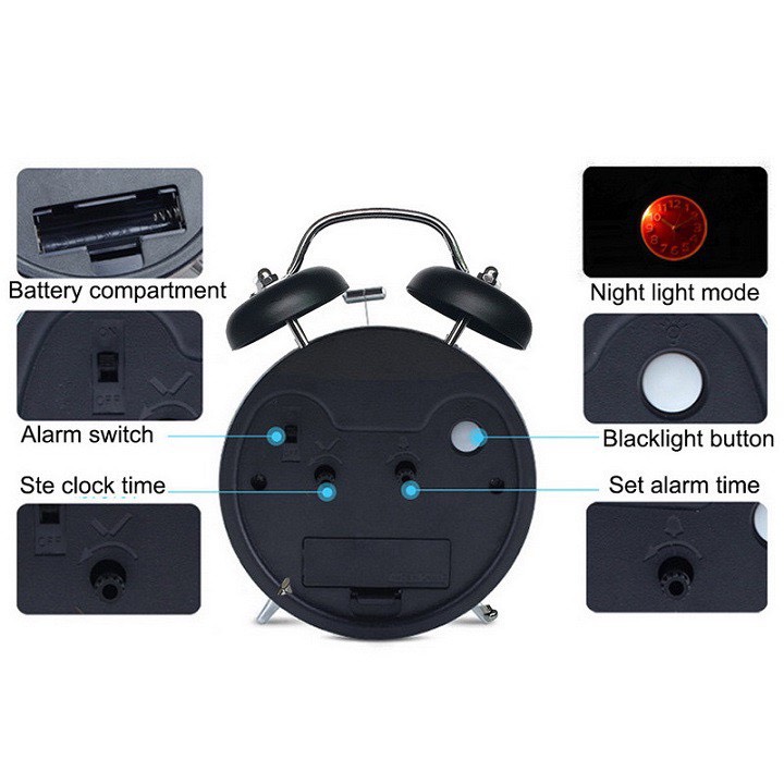 Đồng Hồ Báo Thức Để Bàn có chuông nhiều màu cute Nhỏ nhắn và gọn gàng chiếc đồng hồ báo thức theo phong cách cổ điển này sẽ làm cho những góc nhà nhỏ thêm