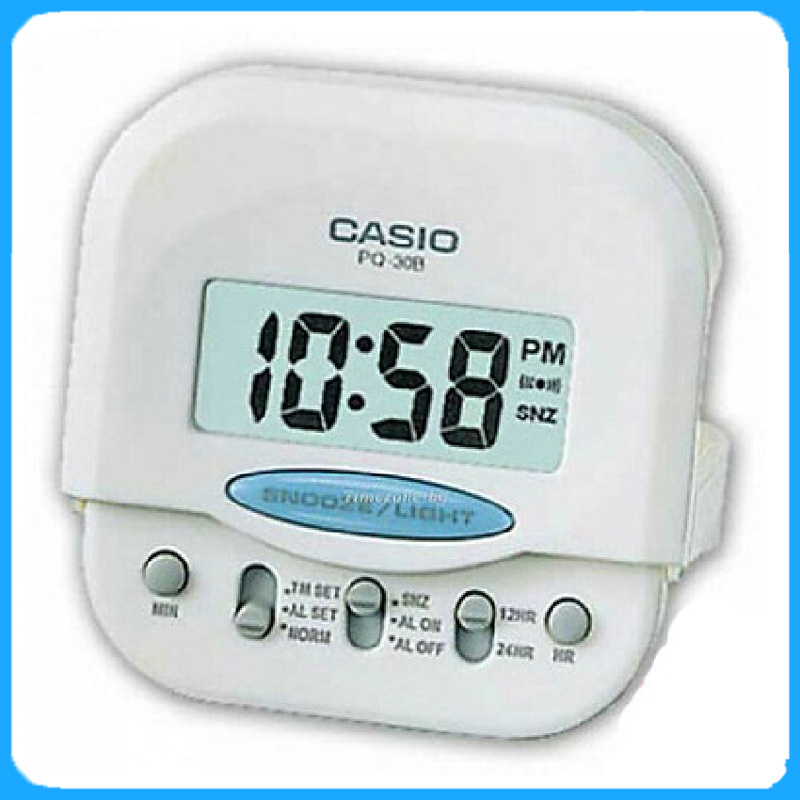 Đồng hồ báo thức du lịch - để bàn điện tử Casio PQ-30-8DF có thiết kế đẹp và nhỏ gọn hiện thị đầy đủ tính năng xem giờ, báo thức có đèn LED. Đồng hồ