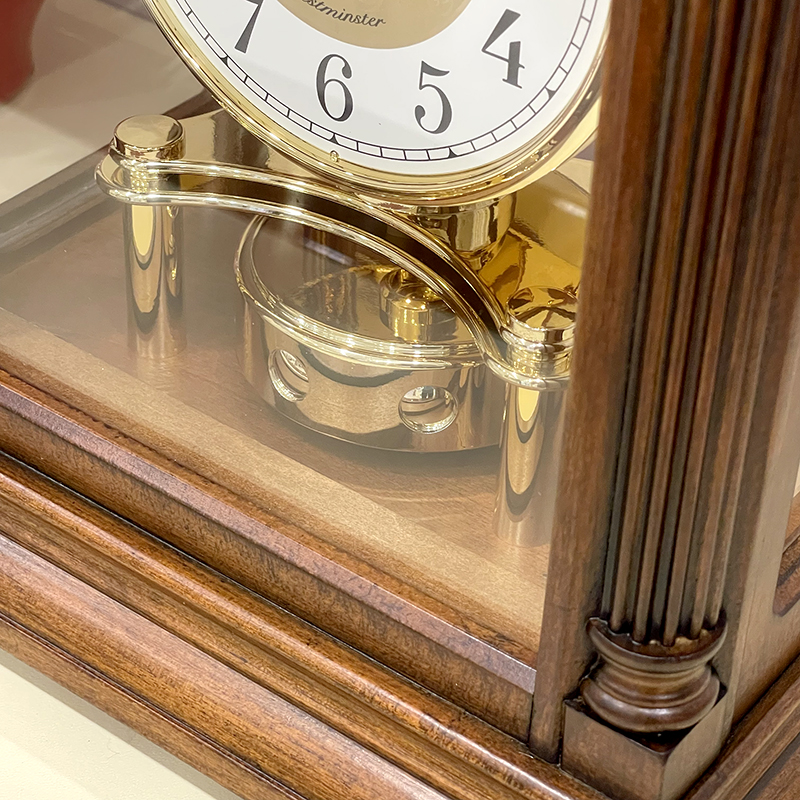 Quả lắc xoay mạ vàng sáng bóng. thiết kế 3 mặt kính trong suốt, mặt sau mica trong suốt càng tôn thêm vẻ lịch lãm cổ điển châu âu.