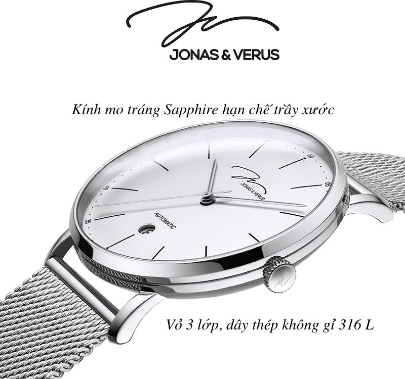 Đồng hồ đeo tay nam hiệu JONAS & VERUS, mã số Y01544-A0.WWWBW, Dây Lưới thép không gỉ 316L, là một trong nhiều những chiếc đồng hồ Jonas & Verus được rất nhiều bạn nam yêu