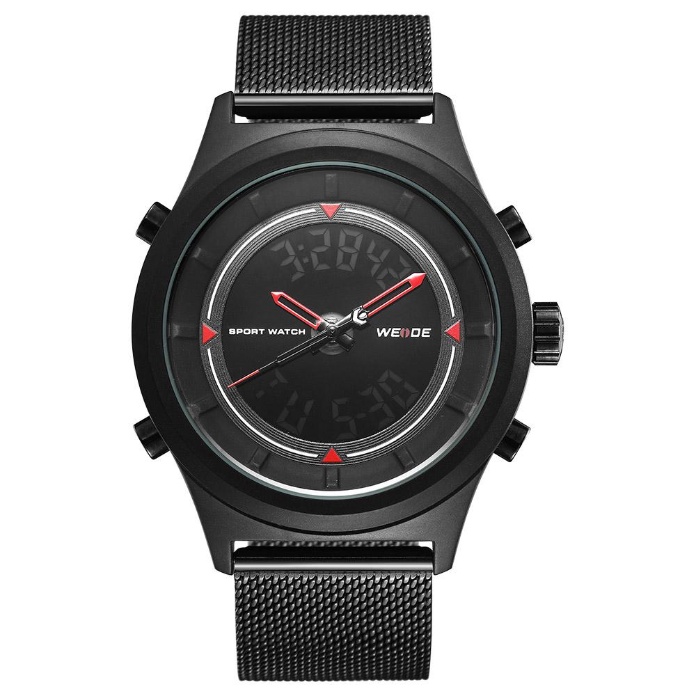 WEIDE WH6105 is a dual display quartz digital men watch for big-dial lover with tachymeter engraved on the case and the function of stopwatch and week. Features: - Six attractive versions for option. - Flashing