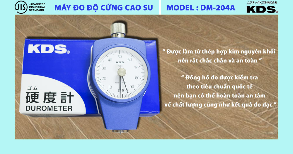- Đồng hồ đo độ cứng cao su KDS DM-204A được làm từ thép hợp kim nguyên khối nên rất chắc chắn và bảo vệ an toàn cho thiết bị bên trong. Đây là đồng hồ cơ nên hiển thị số rất chính xác và không sử dụng pin.