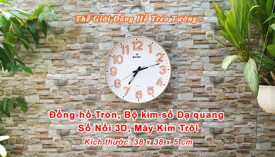 - Đồng hồ EASTAR Cao cấp, Máy Đồng hồ KIM TRÔI, Số nổi 3D có DẠ QUANG (*), kiểu dáng hiện đại với Đường kính 38 cm, dày 5 cm.