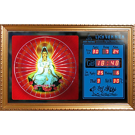 Đồng hồ Lịch Vạn Niên tranh Quan Thế Âm Bồ Tát_hào quang_55606r – Có Remote Đèn