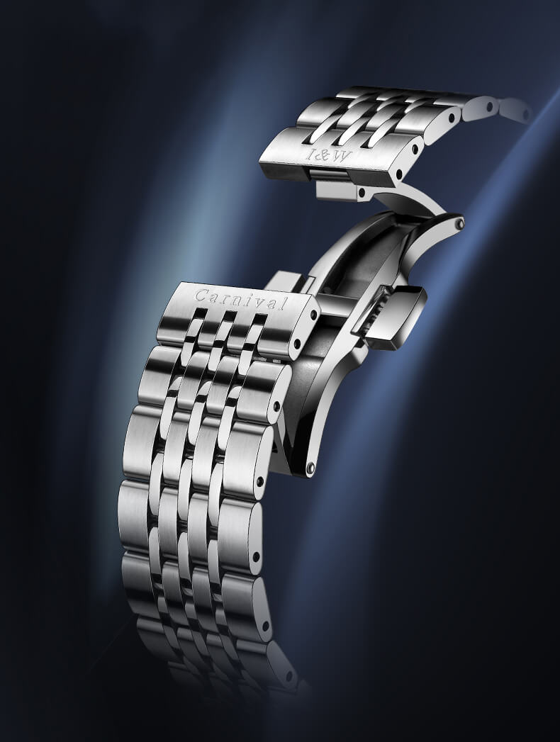Dây đeo bằng thép không gỉ 316L cao cấp, bền bỉ và chống trầy xước.