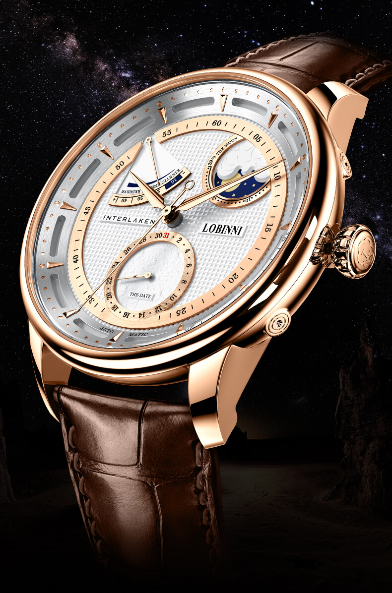Đồng hồ nam chính hãng LOBINNI Thụy Sỹ Thiết kế sang trọng, đẳng cấp cho quý ông Thời gian trữ cót lâu lên đến 40h Chống nước 5ATM, Kính sapphire Toàn bộ máy được làm