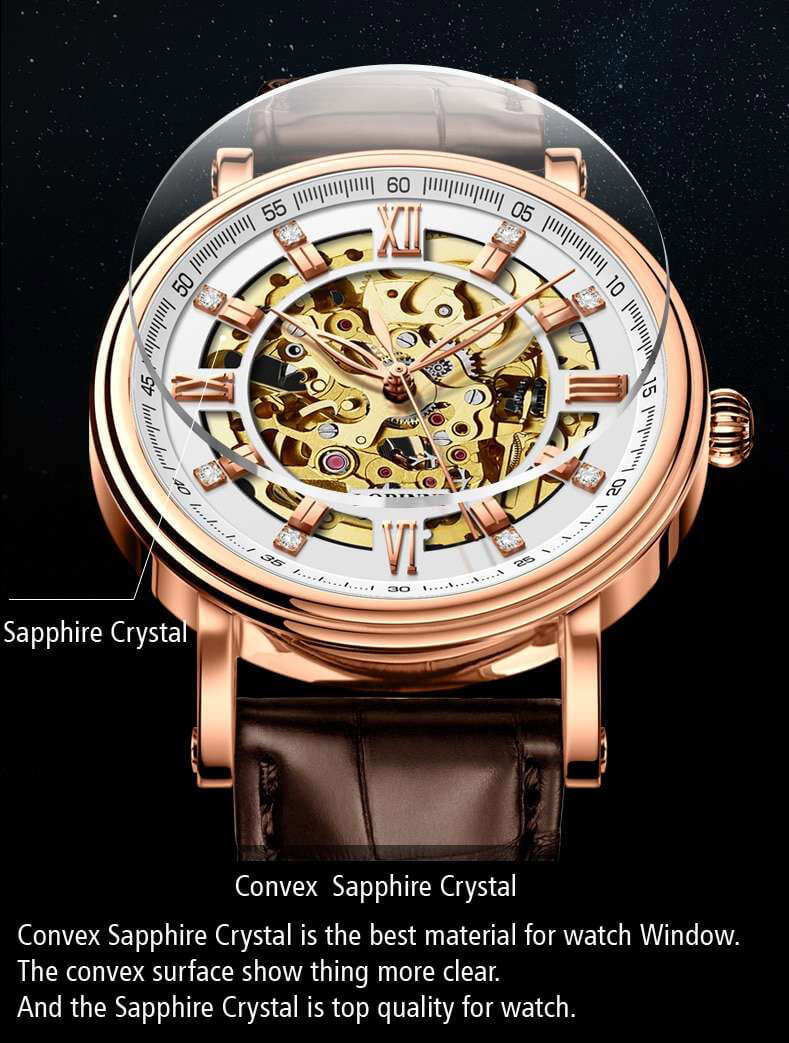 ❏ Vàng hồng 18K: Là vàng nguyên khối, phủ trọn gần như là toàn bộ mặt số đồng hồ LOBINNI L9010-2. Trong khi đó, sự sang trọng lại được kết hợp với nền tảng Skeleton độc đáo, giúp các quý ông chìm đắm ở cả mặt trước lẫn mặt sau thiết kế.