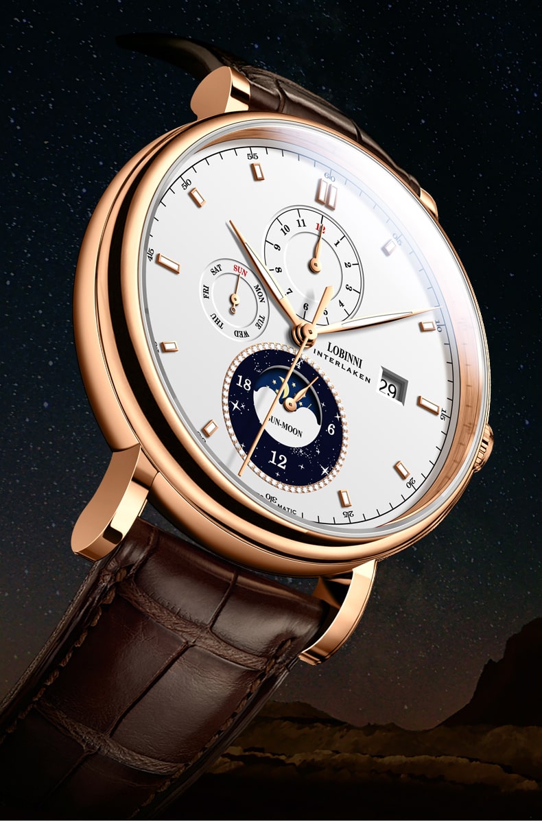 Nhãn hiệu LOBINNI Mã sản phẩm No.9010-1 Giới tính Nam Kiểu máy Automatic (Máy Cơ) Đường kính mặt 42 mm Độ dày 11 mm Chất liệu vỏ Thép không gỉ 316L Chất liệu dây Dây da cao cấp Chất liệu mặt kính Sapphire Khả
