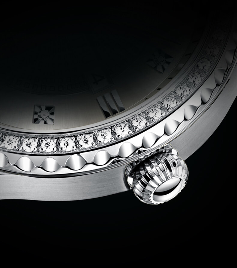 Ấn tượng đầu tiên chắc chắn đến từ ngoại hình của sản phẩm. Với tông mặt trắng bắt mắt, mặt đồng hồ được viền đá sang trọng, trau chuốt đến từng chi tiết nhỏ, thể hiện được quyền lực trên cổ tay người đeo.