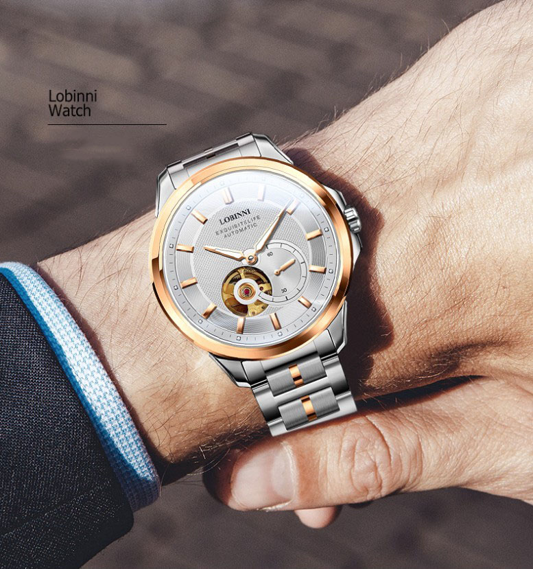 Đồng hồ nam chính hãng LOBINNI Thụy Sỹ Thiết kế sang trọng, đẳng cấp cho quý ông Thời gian trữ cót lâu lên đến 40h Chống nước 5ATM, Kính sapphire Toàn bộ máy được làm