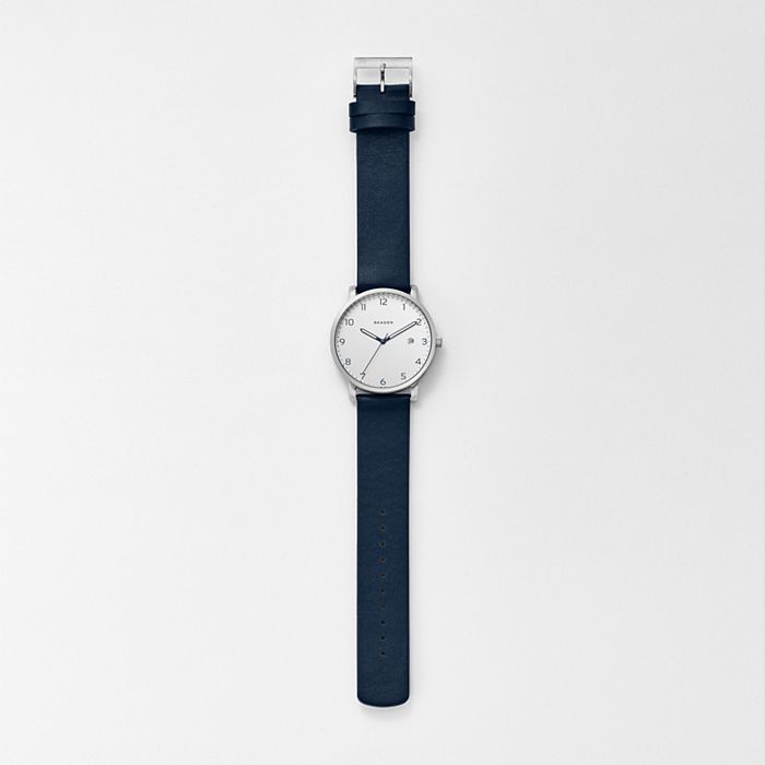 Skagen men's holst leather strap watch