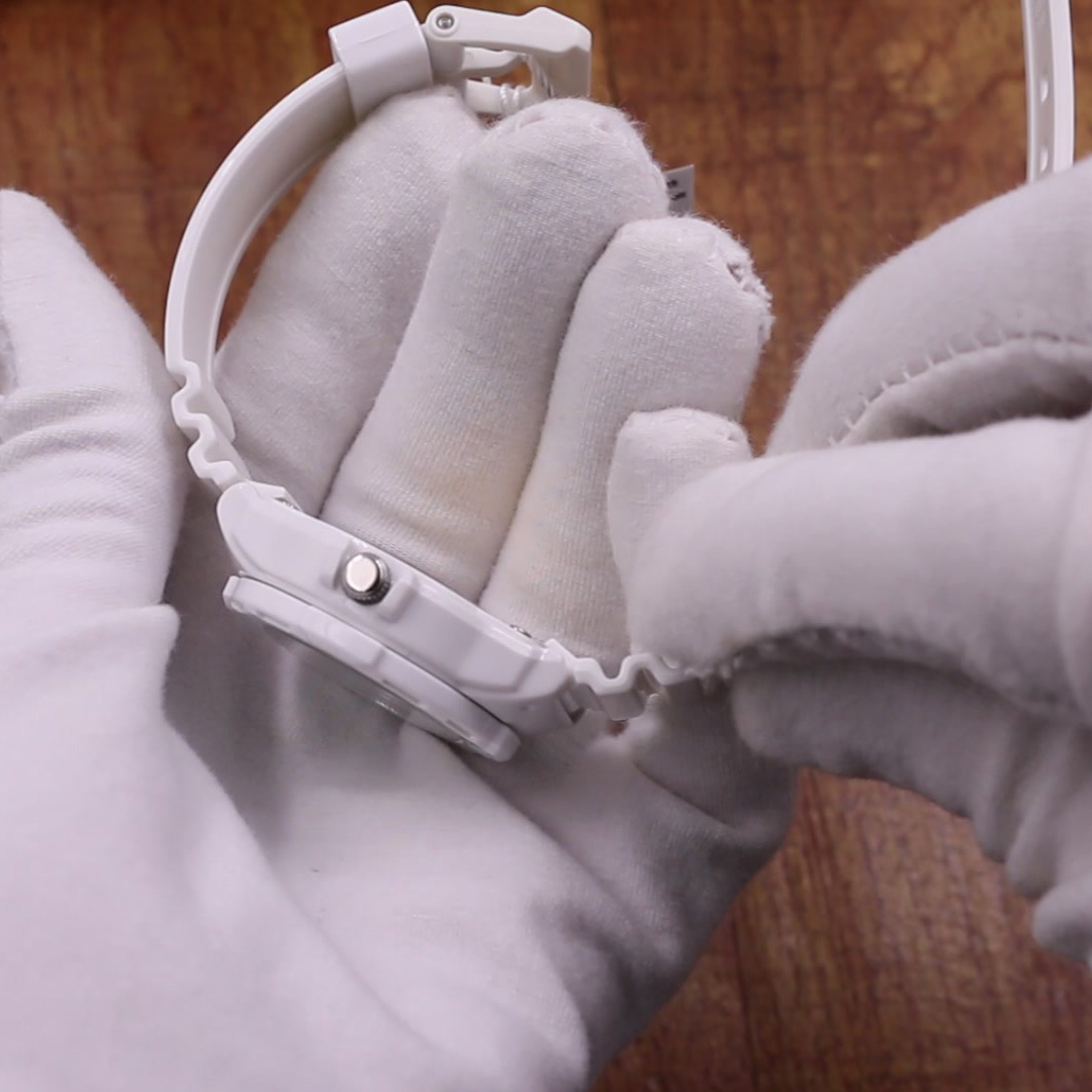 Thông số kỹ thuật Chiều cao vỏ (bao gồm chấu) 46.1mm Chiều ngang vỏ (bao gồm nút vặn) 41.8mm Độ dày vỏ 13.9mm Vật liệu vỏ / gờ Nhựa cao cấp Resin Trọng lượng 41g