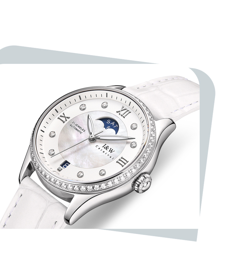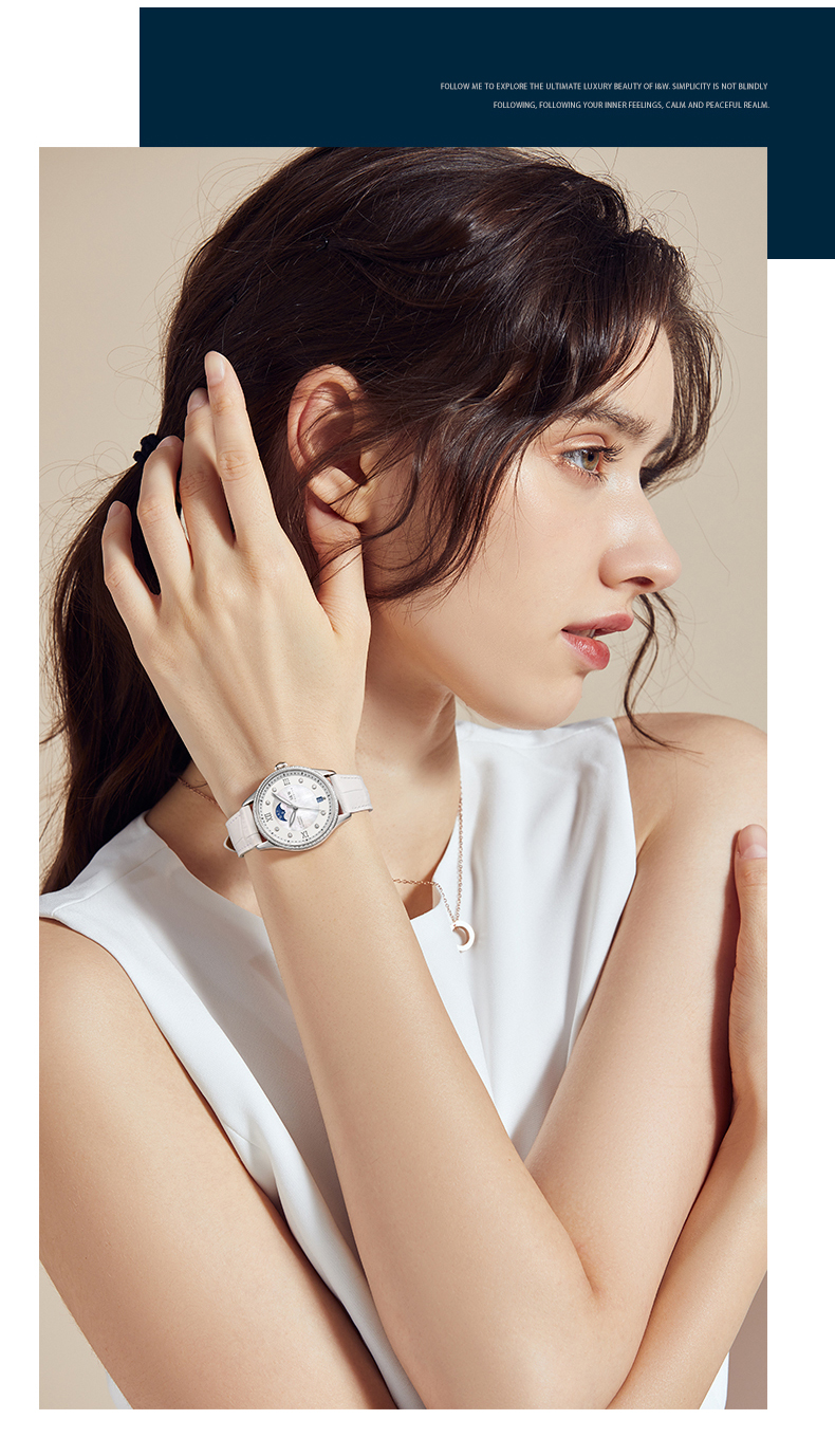 Với thiết kế đẹp, nữ tính, nhưng cũng không kém phần trang trọng, sành điệu IW582G phù hợp với chị em cổ tay vừa, thích nét cổ điển, thanh lịch mà vẫn trẻ trung Mặt đồng hồ tròn truyền thống , niềng được gắn đá mạ bạc sang trọng bo tròn quyến rũ .Quanh nền trắng mặt số , kim chỉ được làm mỏng phủ phản quang nổi bật Size mặt 35mm , mỏng chỉ 12mm Máy Automatic Nhật bản bền bỉ Chống nước 3ATM. Thân vỏ thép không gỉ Mặt kính sapphire