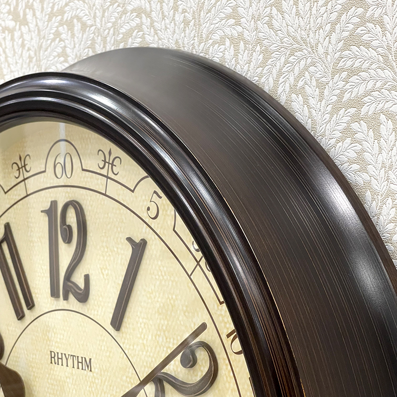 Mua tại TiktokĐồng hồ treo tường Rhythm CMJ504NR06, dùng pin (C x 2). Vỏ nhựa giả đồng cổ màu nâu. Kích thước 53.4 x 8.2cm, trọng lượng 3.33kg. Âm thanh nổi thính phòng SIP ( Sound In Place ) ngân vang với 4 chọn lựa chế độ phát nhạc gồm : 6 bản nhạc cổ điển / 3 bản giáng sinh / Nhạc chuông nhà thờ Westminster kết hợp gõ điểm giờ / 4×4 Westminster – 15 phút, 30 phút, 45 phút dạo nhạc và mỗi đầu giờ gõ điểm giờ. Chế độ tự động ngưng phát nhạc ban đêm từ 11:00 đêm đến 5:45 sáng. Núm chỉnh âm lượng tiện lợi. Khung quả lắc mạ đồng khắc CNC cổ điển đẹp mắt. Các số trên mặt đồng hồ nổi 3D mạ đồng nâu đen kiểu cổ điển châu Âu trên nền mặt hoa văn sắc sảo. Máy chạy cực êm, chính xác, bền bỉ.