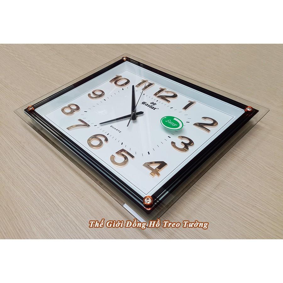 ✨Đồng hồ Treo tường EASTAR KIM TRÔI Chữ Nhật Mặt Trắng – Mặt Kính 3D – Bộ Số Nổi Ánh Kim Bạc – Tặng Pin Maxell
