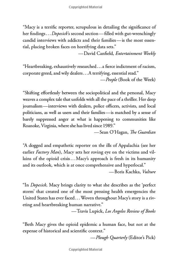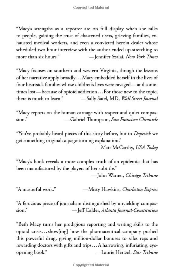 👁️ 737 | ⌚2025-10-01 04:49:57.947Joan Mackenzie reviews Dopesick by Beth MacyBook Review - Dopesick by Beth MacyDopesick: Dealers, Doctors, and the Drug Company that Addicted America by Beth Macy | Free Audiobook“Dopesick” Author: Opioid Overdose Deaths Reaching Record Highs | Amanpour and CompanyDopesick: Dealers, Doctors, & the Drug Company That Addicted America429 - Book Club—Dopesick: Dealers, Doctors, and the Drug Company That Addicted America with...