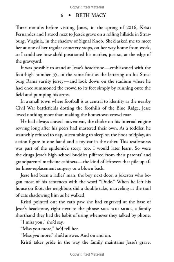 Beginning with a single dealer who lands in a small Virginia town and sets about turning high school football stars into heroin overdose statistics, Macy sets out to answer a grieving mother's question-why her only son died-and comes away with a gripping, unputdownable story of greed and need. From the introduction of OxyContin in 1996, Macy investigates the powerful forces that led America's doctors and patients to embrace a medical culture where overtreatment with painkillers became the norm. In some of the same communities featured in her bestselling book Factory Man, the unemployed use painkillers both to numb the pain of joblessness and pay their bills, while privileged teens trade pills in cul-de-sacs, and even high school standouts fall prey to prostitution, jail, and death.