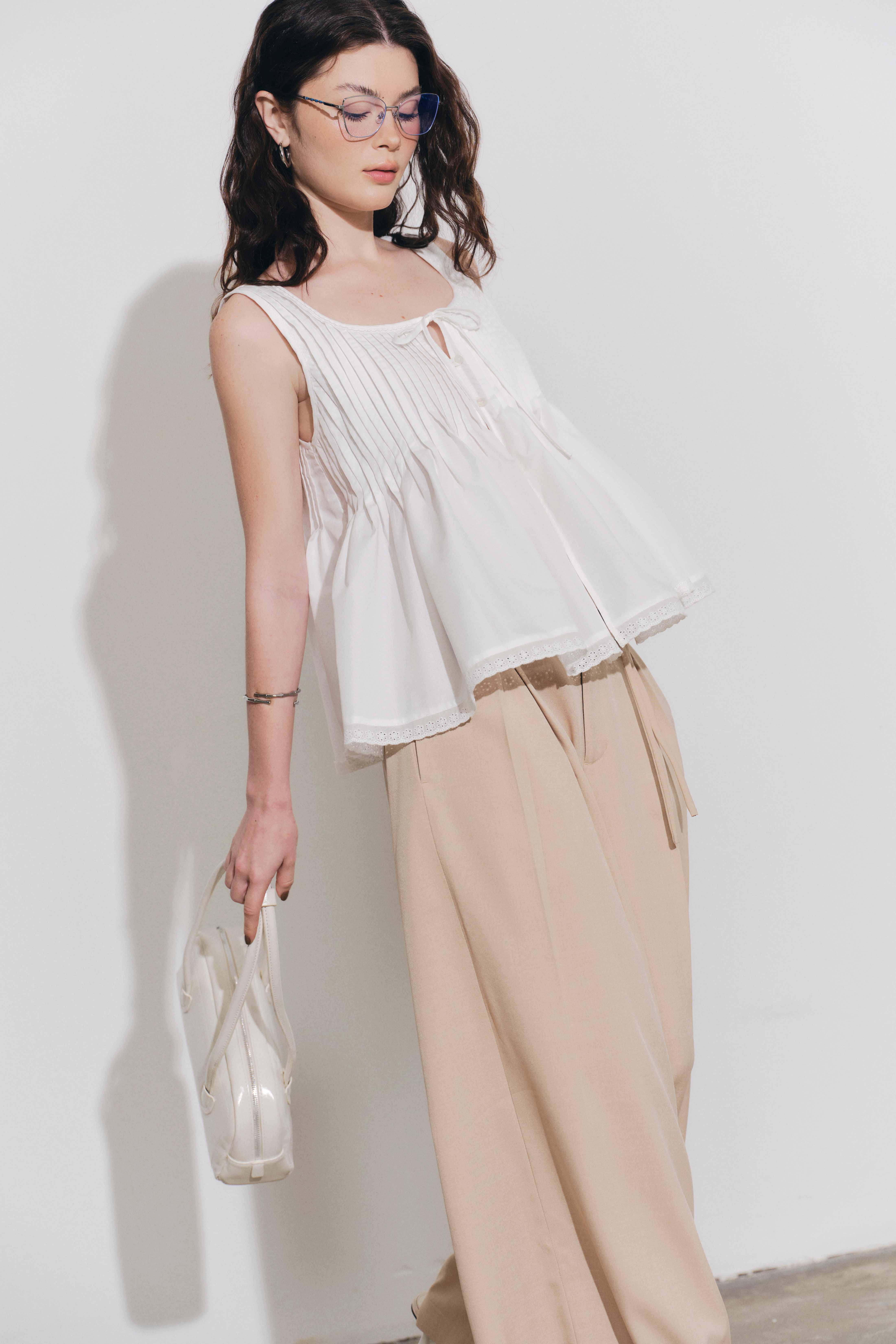 ✨DOTTIE - Áo kiểu chiết ly - Trắng - T1130
