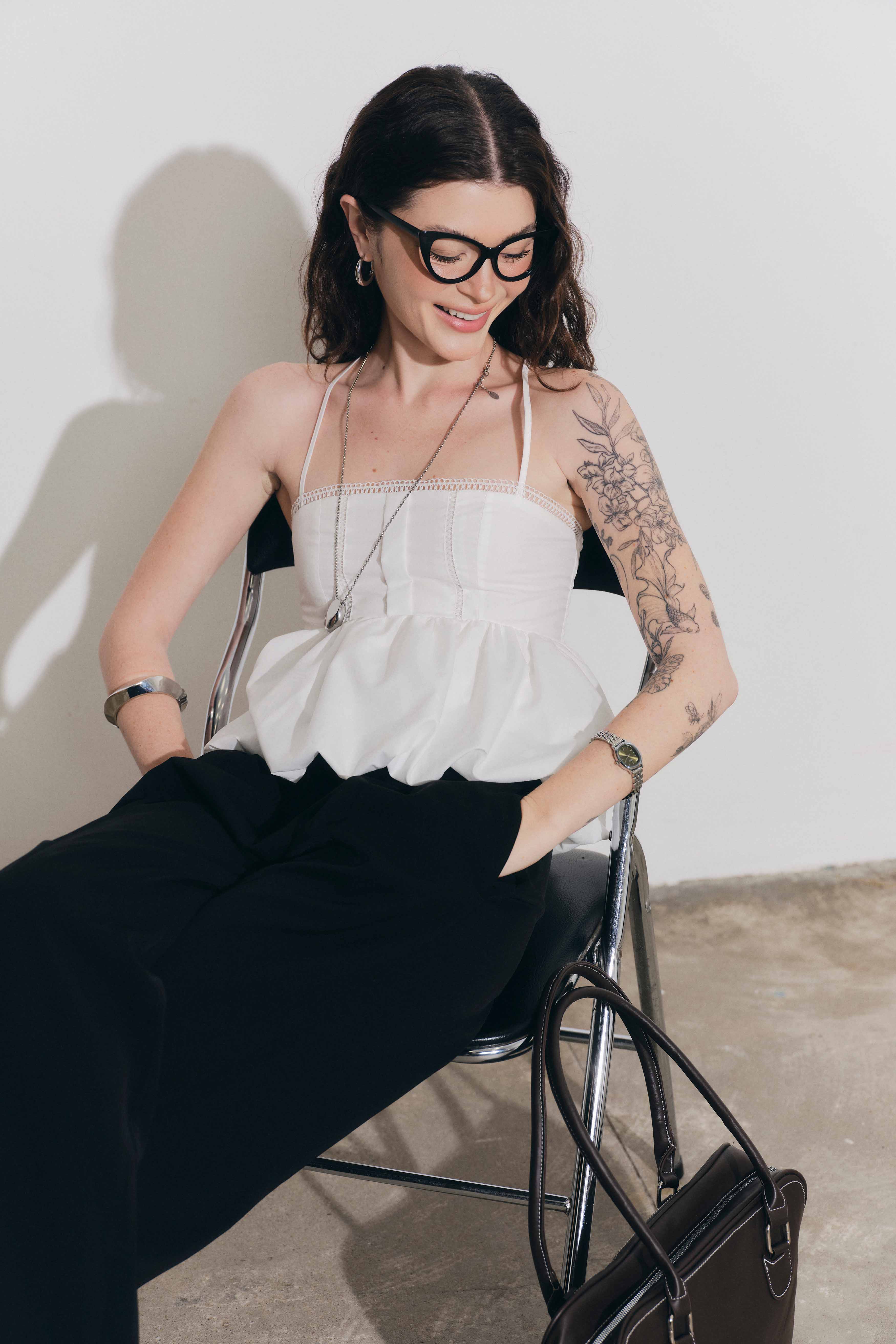 --------------- CHI TIẾT SẢN PHẨM ✿ Sản phẩm : Áo yếm cổ xếp ly kem cổ sâu quyến rũ nữ tính Rami Miều Est.2013 ✿ Chất liệu : Kate Hoa ✿ Màu sắc : KEM