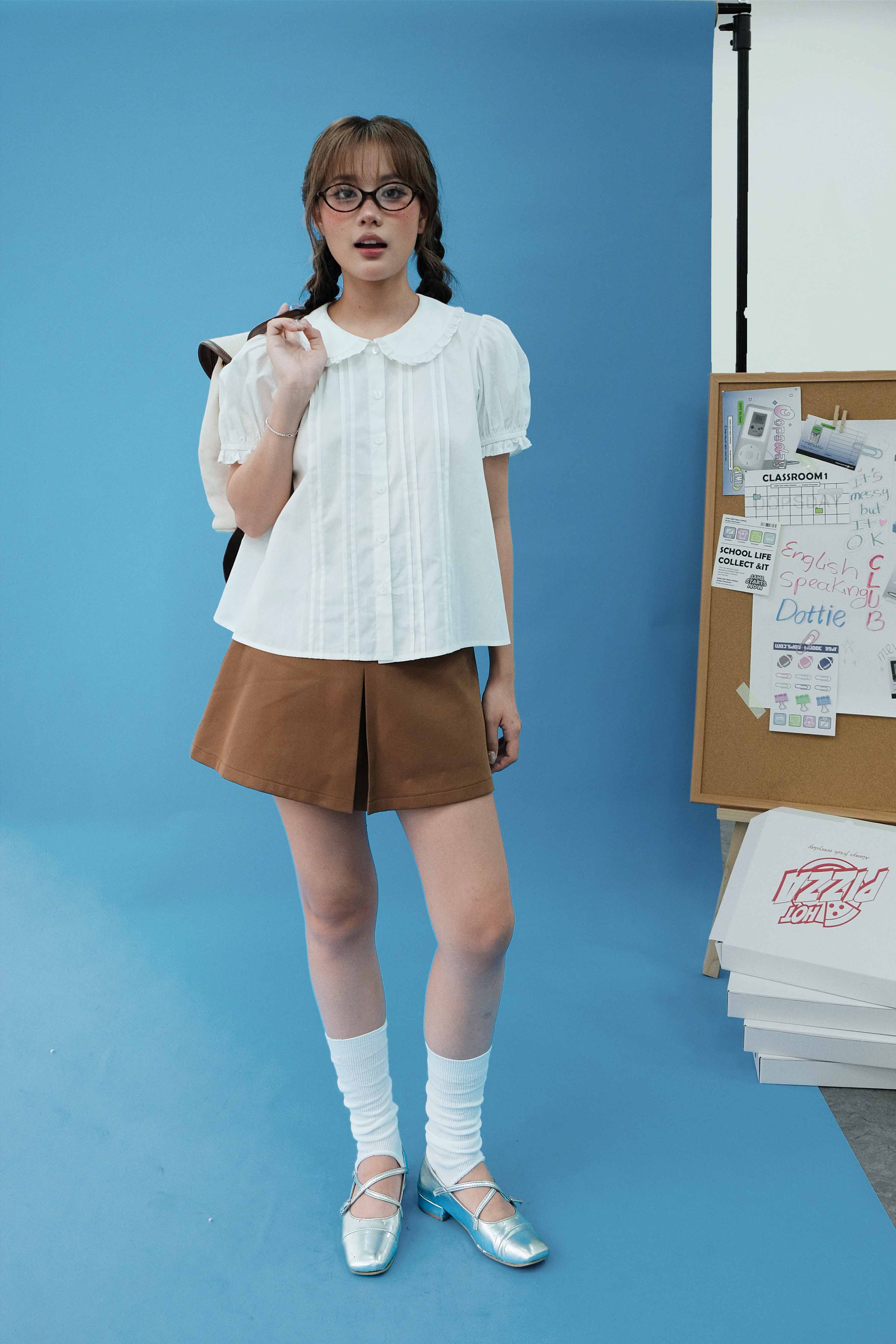 ✨DOTTIE - Áo sơ mi cổ sen tay phồng - Trắng kem - T1123