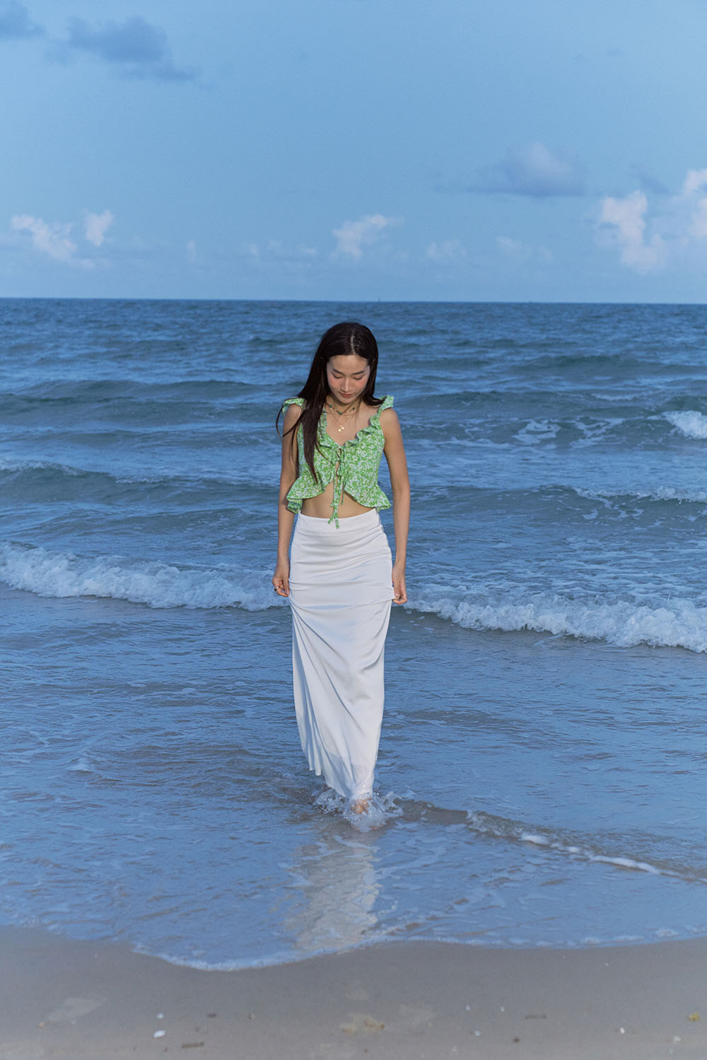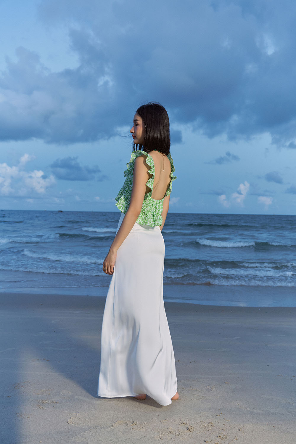 ✨DOTTIE - Chân váy maxi vải satin - Trắng - S0168