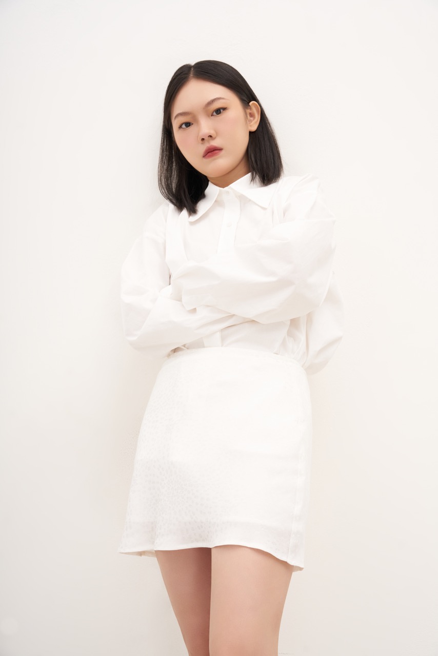CHI TIẾT SẢN PHẨM - Sản phẩm : Chân váy dáng ngắn form chữ A nơ cột trước Slay Miều Est.2013 - Chất liệu : Lụa Mango Gân - Màu sắc : TRẮNG / ĐỎ