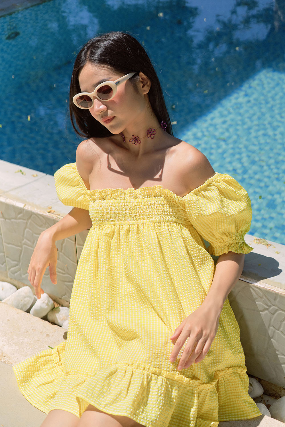 DOTTIE - Đầm ngắn bẹc vai nhún bèo - Vàng - D0497