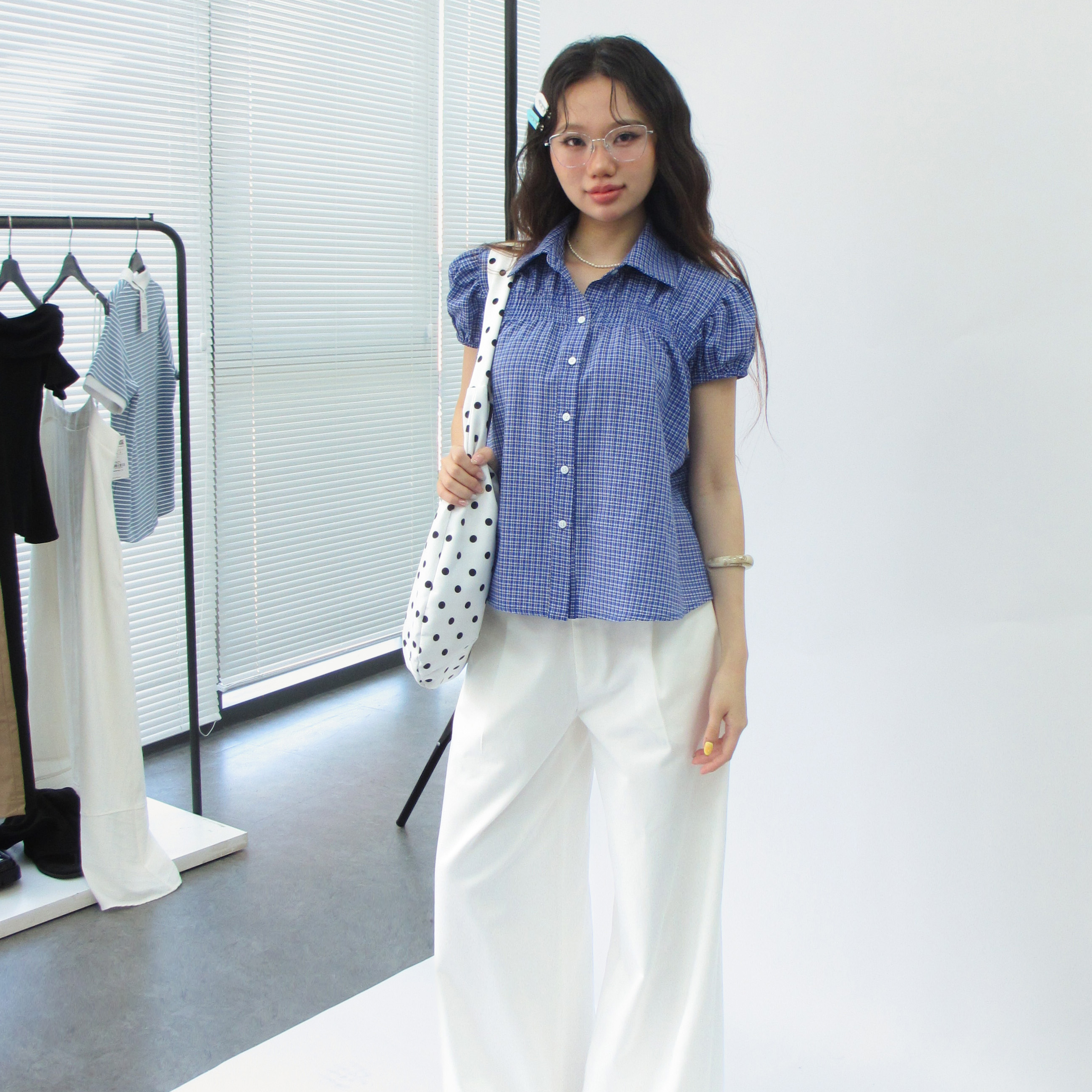 Set Áo Đen Tay Vây Cá Quần Lưng Liền Caro Trắng Đen Maxivic M-SETBO-08 - Kiểu dáng • Quần ống rộng • Phối cùng áo đen tay vây cá - Chất liệu • Quần: