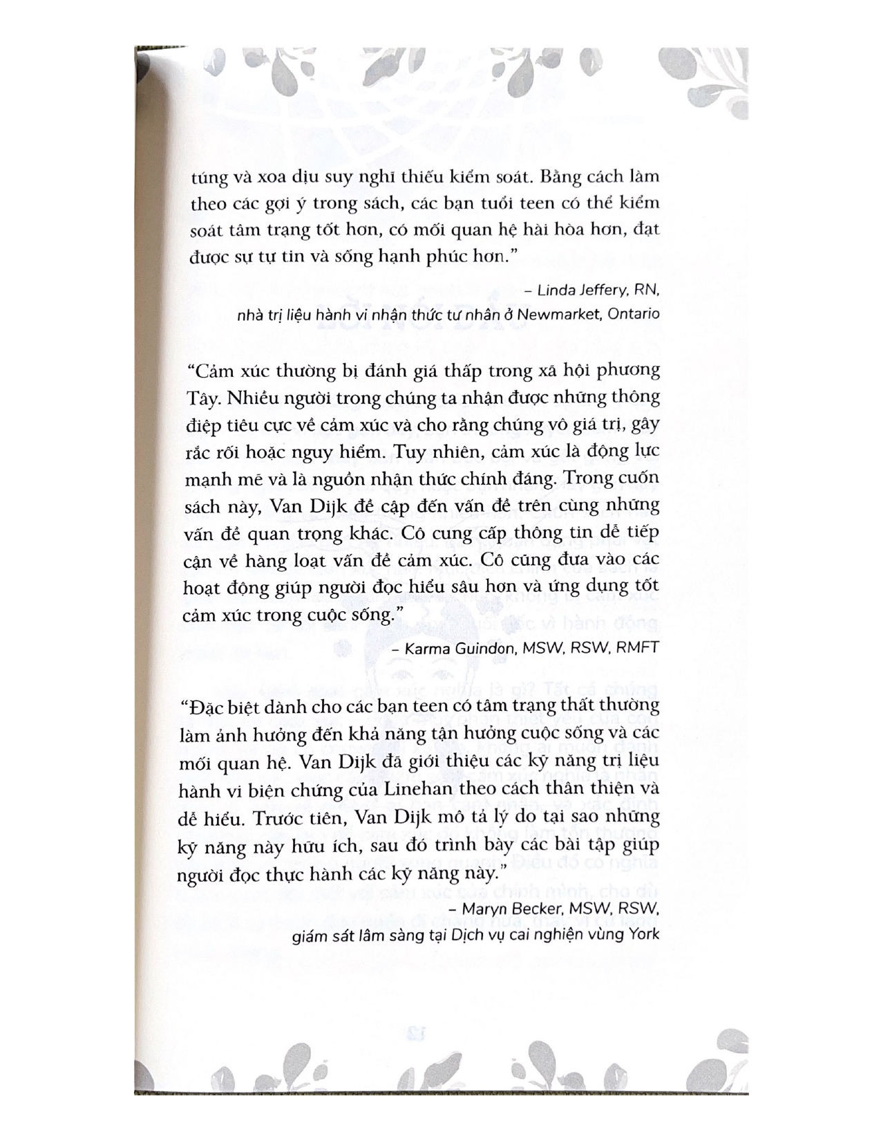 Đừng Để Cảm Xúc Điều Khiển Cuộc Đời là sách bài tập hỗ trợ các bạn trẻ tuổi teen khi rơi vào tình huống này. Bạn đọc sẽ tìm thấy trong sách những cách kiểm soát cảm xúc, giúp bạn sẵn sàng đương đầu với mọi “quả chanh” cuộc đời ném vào mình. Dựa trên liệu pháp hành vi biện chứng, một phương pháp trị liệu được thiết kế nhằm hỗ trợ những người gặp khó khăn trong việc xử lý những cảm xúc mãnh liệt, sách sẽ hướng dẫn bạn các kỹ năng cần thiết để vượt qua những thăng trầm trong đời với sự tự tin và duyên dáng.