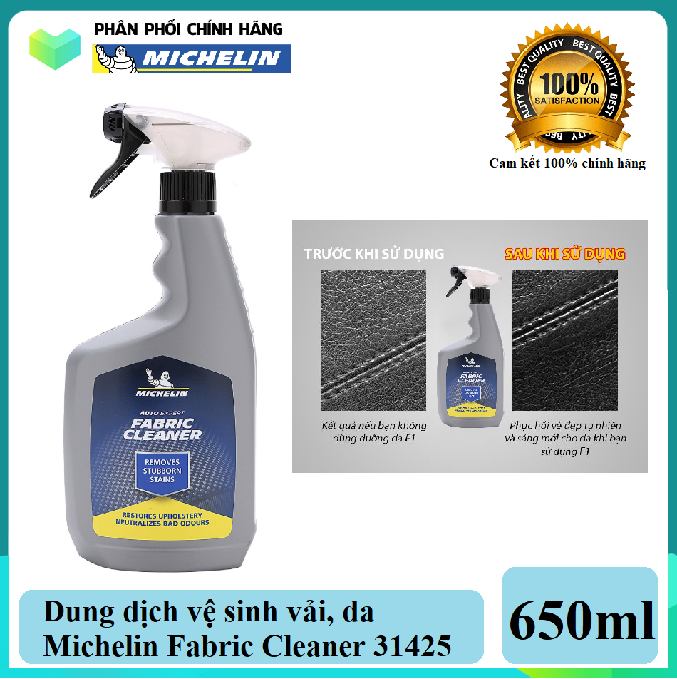 Dung dịch vệ sinh vải, da Michelin Fabric Cleaner 31425 - 650ml - Hàng chính hãng làm sạch bụi bẩn và vết bẩn cứng đầu từ thảm ghế, vải và lót trung hòa mùi hôi Tạo thêm mùi hương mới để khôi phục mùi ẩm trong Loại bỏ bùn, bụi bẩn và cặn bụi Sẽ không ảnh hưởng đến nhựa, thủy tinh, cao su hoặc kim loại