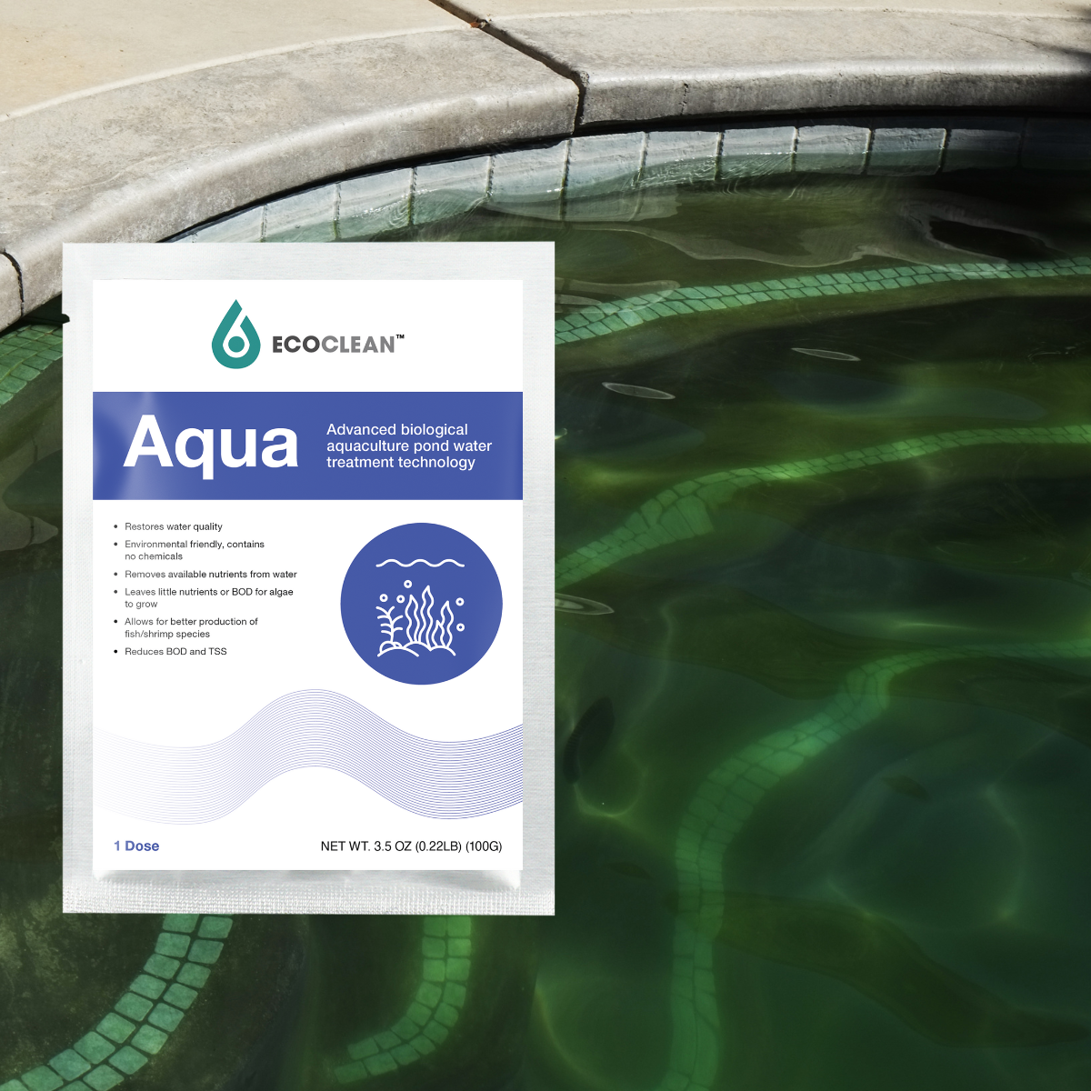 EcoClean Aqua bao gồm các chủng vi sinh được chọn lọc đặc biệt, hệ enzyme hoạt tính và chất căng bề mặt. Bởi sự đa dạng của các chủng vi sinh an toàn, tự nhiên và hệ enzyme hoạt tính nên EcoClean Aqua là sản phẩm tuyệt vời để làm sạch ao nuôi thông qua việc xử lý tảo, làm giảm mật độ BOD và TSS. Sản phẩm còn giúp là giảm hàm lượng các chất độc tố như NH3, ammonia, H2S và hàm lượng lớn các vấn đề khó giải quyết như tảo, giảm chỉ tiêu BOD và mùi.