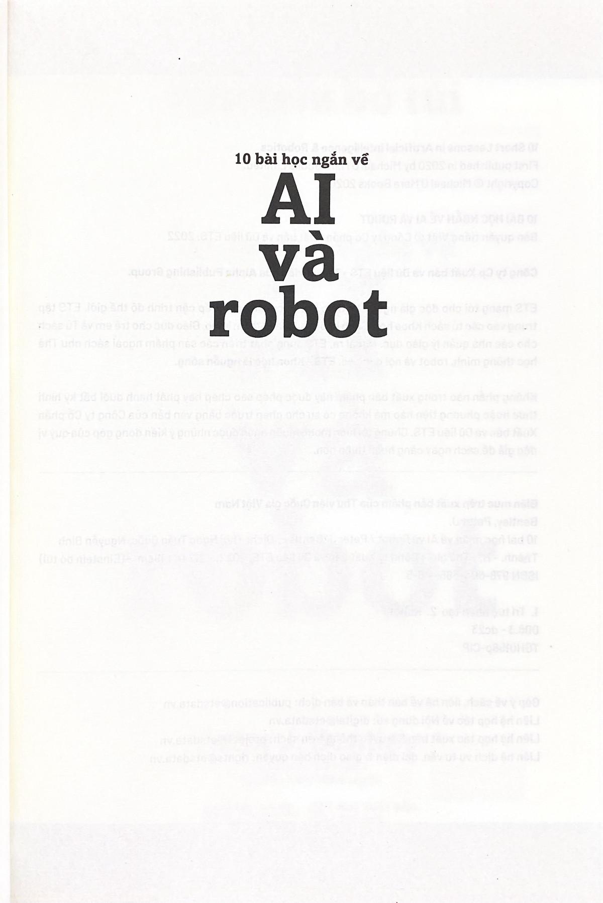 AI và robot xuất hiện trong mọi khía cạnh, từ nhận dạng khuôn mặt trên điện thoại thông minh đến quản lý nền kinh tế toàn cầu. Chúng có ý nghĩa ra sao với cuộc sống của chúng ta trong hiện tại và tương lai? Chúng khiến thế giới tốt đẹp hơn hay tạo ra những vấn đề mới? 10 bài học ngắn về AI và robot sẽ giúp ta trả lời các câu hỏi trên cũng như khám phá thêm nhiều nội dung khác về công nghệ mạnh mẽ nhất của thế kỷ 21.