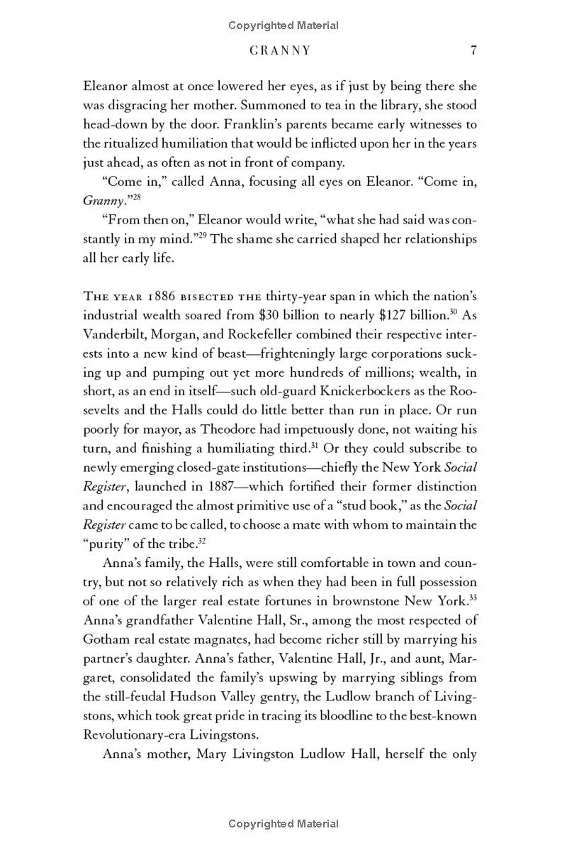 In the first single-volume cradle-to-grave portrait in six decades, acclaimed biographer David Michaelis delivers a stunning account of Eleanor Roosevelt’s remarkable life of transformation. An orphaned niece of President Theodore Roosevelt, she converted her Gilded Age childhood of denial and secrecy into an irreconcilable marriage with her ambitious fifth cousin Franklin. Despite their inability to make each other happy, Franklin Roosevelt transformed Eleanor from a settlement house volunteer on New York’s Lower East Side into a matching partner in New York’s most important power couple in a generation.