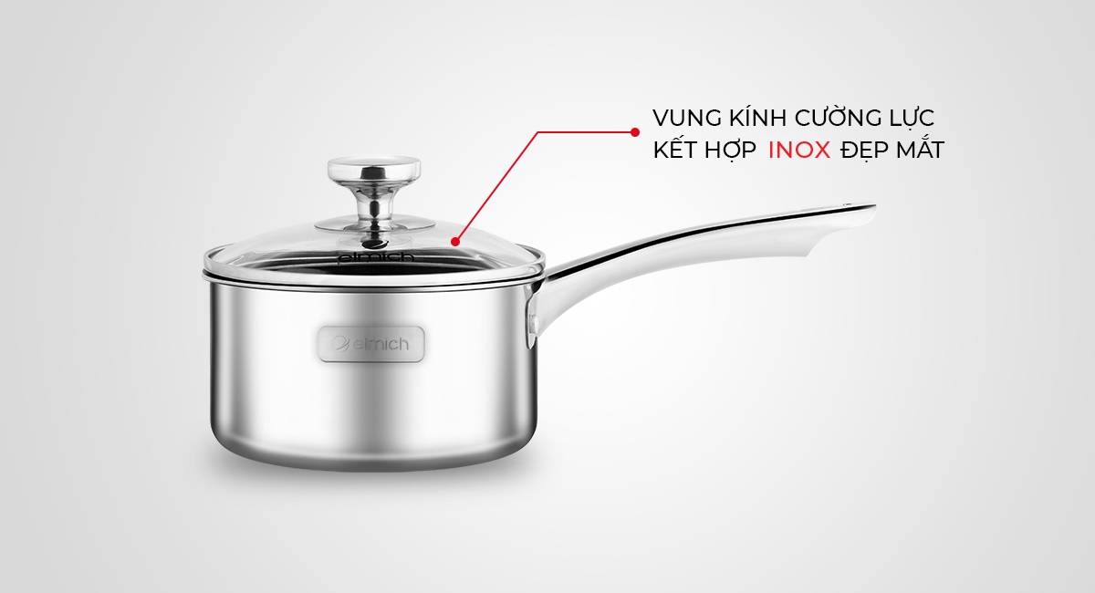 Quánh inox 304 thân đúc đáy liền Elmich Trimax Baby EL-3848 đường kính 14cm vung kính đáy từ