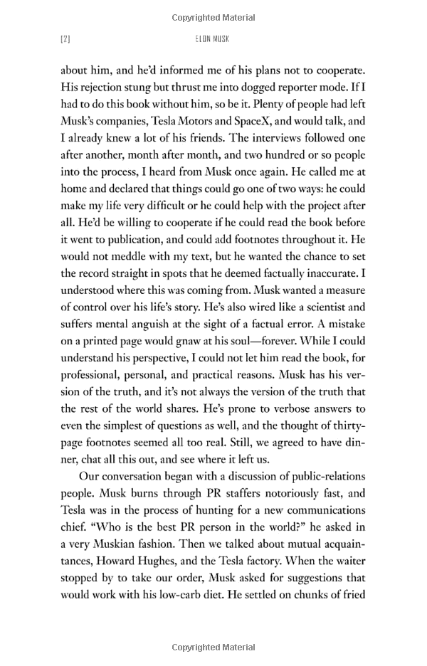Elon Musk Intl In Elon Musk: Tesla, SpaceX, and the Quest for a Fantastic Future, veteran technology journalist Ashlee Vance provides the first inside look into the extraordinary life and times of Silicon Valley's most