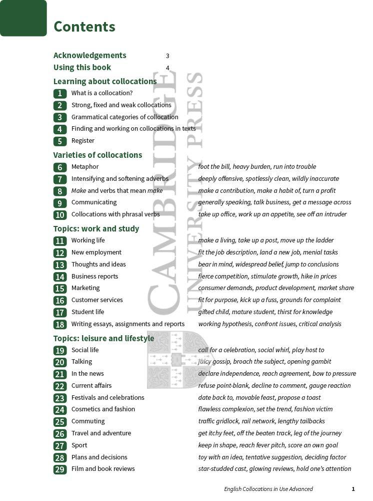 English Collocations In Use Advanced Book With Answers (Vocabulary In Use) Improve your fluency and sound more natural in English. Collocations are combinations of words which frequently appear together. This book contains explanations and practice
