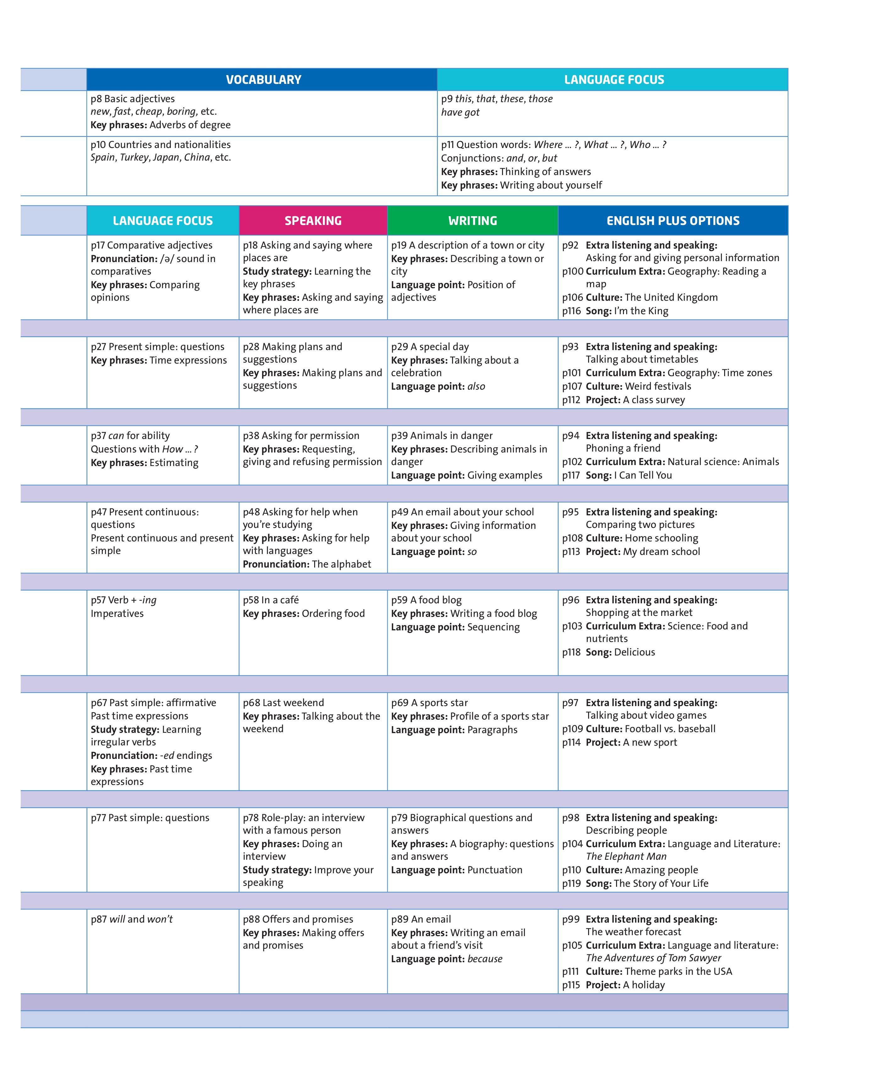 Provides more practice to consolidate the Student Book Picture Dictionary (Levels 1-4) helps with vocabulary practice Grammar Reference Guide (Levels 5-6) offers more practice, and allows students and teachers to check grammar rules