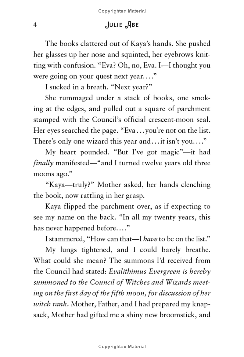 Eva Evergreen is determined to earn the rank of Novice Witch before her thirteenth birthday. If she doesn't, she'll lose her magic forever. For most young witches and wizards, it's a simple enough test: