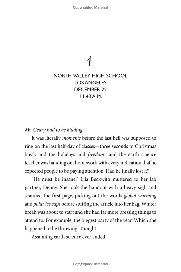 Seventeen-year-old Lila Beckwith's parents just left for vacation, and Lila's all set to throw the holiday party of the season. But when her Christmas-obsessed little brother, Cooper, discovers that global warming is melting the North Pole, he and his best friend, Tyler, take off on a runaway mission to save Santa.