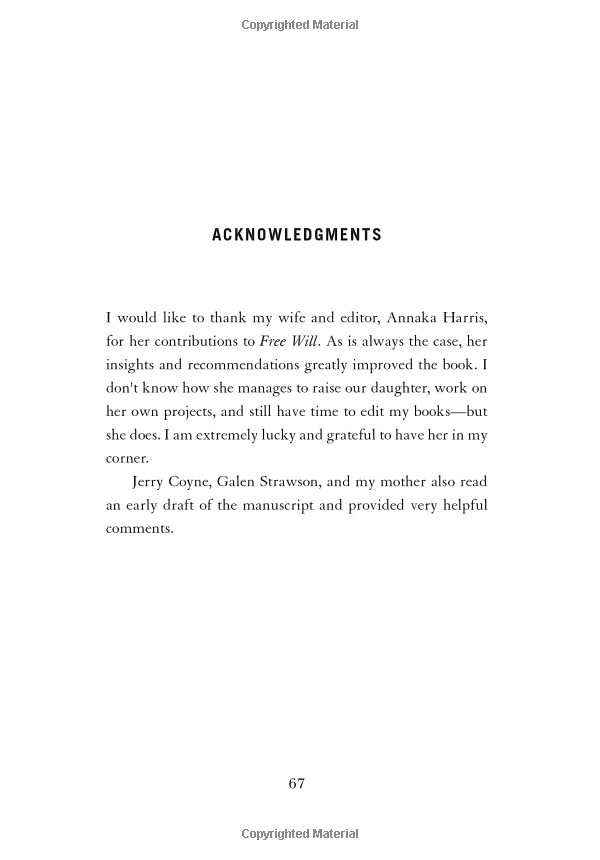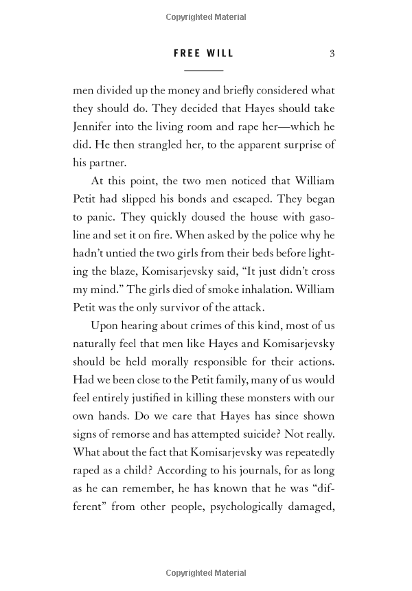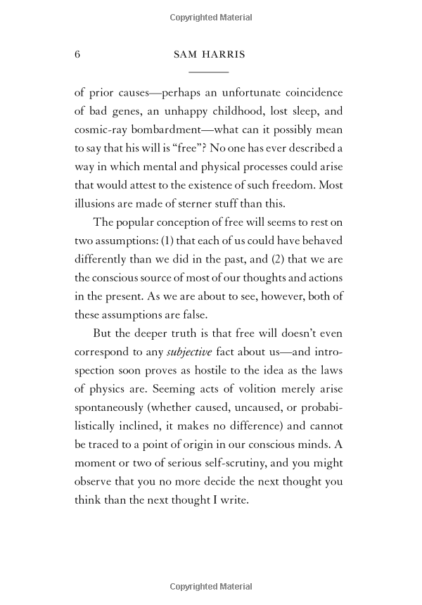 The physiologist Benjamin Libet famously demonstrated that activity in the brain's motor regions can be detected some 300 milliseconds before a person feels that he has decided to move. Another lab recently used fMRI data to show that some "conscious" decisions can be predicted up to 10 seconds before they enter awareness (long before the preparatory motor activity detected by Libet). Clearly, findings of this kind are difficult to reconcile with the sense that one is the conscious source of one's actions. The question of free will is no mere curio of philosophy seminars. A belief in free will underwrites both the religious notion of "sin" and our enduring commitment to retributive justice. The Supreme Court has called free will a "universal and persistent" foundation for our system of law. Any scientific developments that threatened our notion of free will would seem to put the ethics of punishing people for their bad behaviour in question.In Free Will Harris debates these ideas and asks whether or not, given what brain science is telling us, we actually have free will?