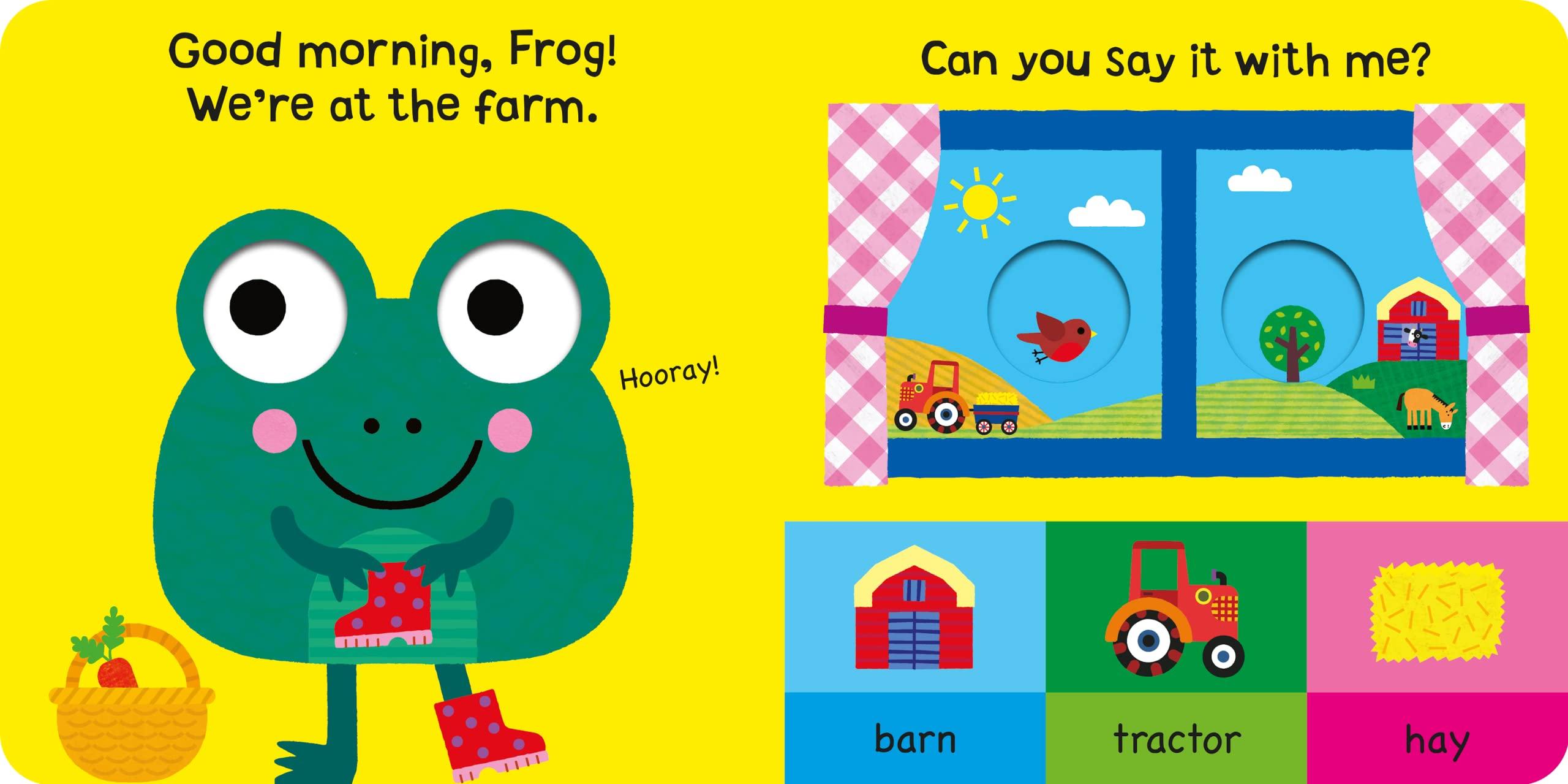 Bold, googly eyes and a sliding mechanism bring this adorable frog to life, while little children share the simple story and point at the bold pictures.