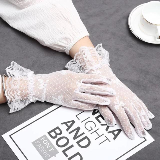 ✨Găng tay cô dâu lưới ren thêu hình trắng (Đen) Giangpkc