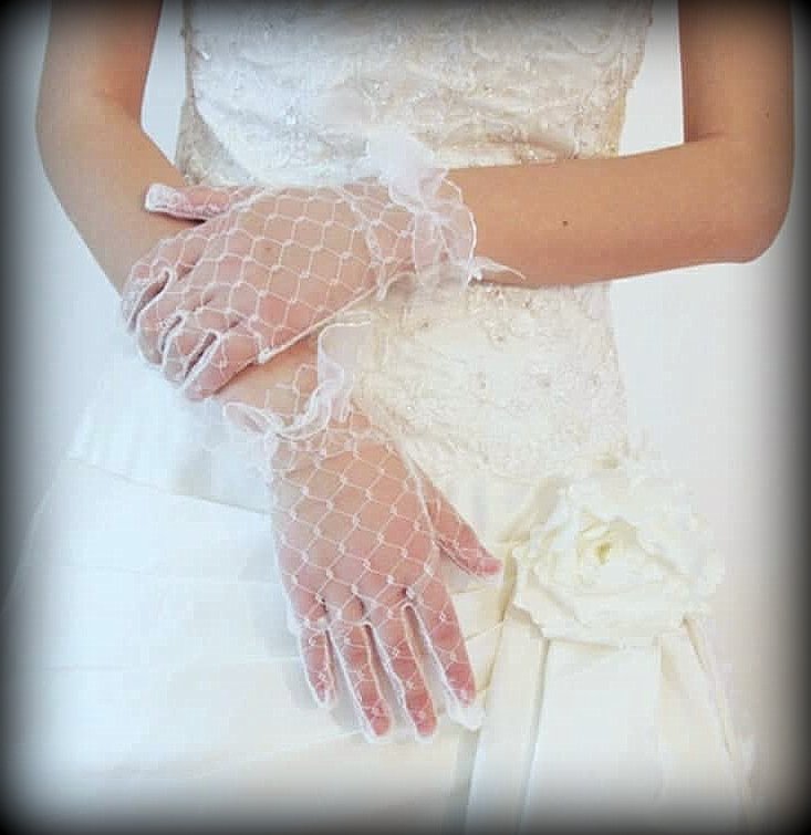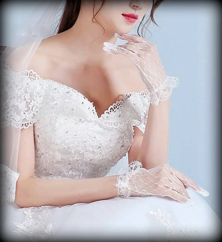 Găng tay Cô dâu và Dạ hội MS: 37513 Chất liệu: ren mắt cáo, cổ găng đính ruy băng Màu sắc: trắng kem