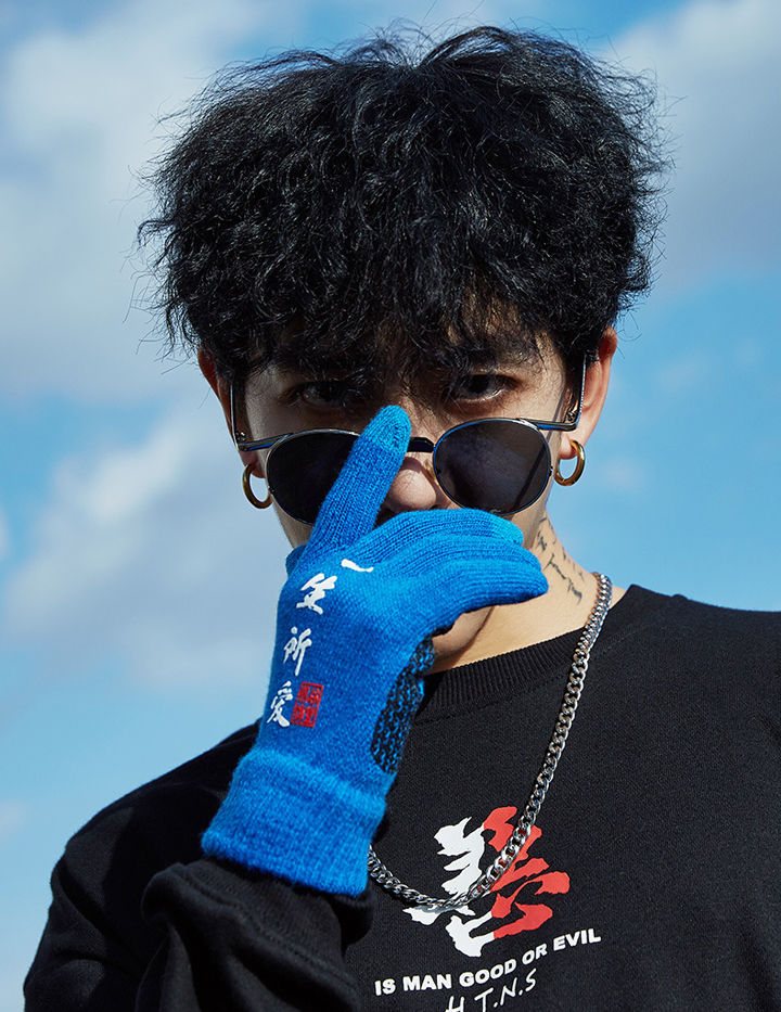 Găng tay in những dòng chữ thư pháp của người hoa tượng trung cho sự may mắ