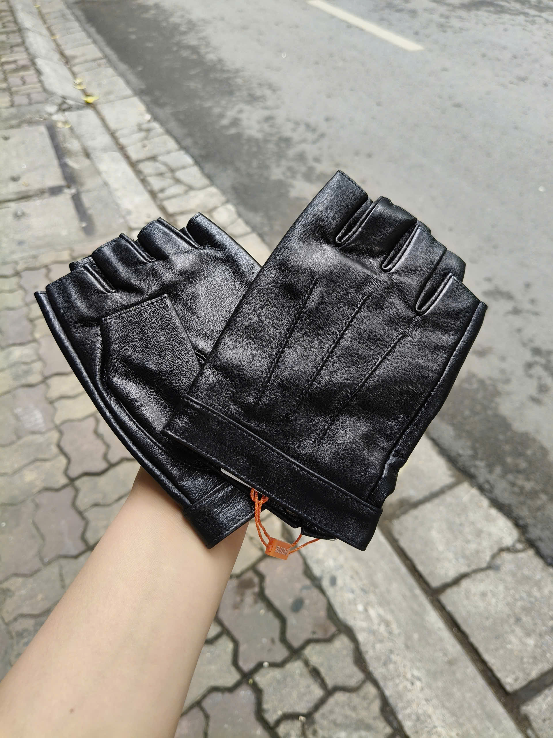 Găng tay nam hở ngón da cừu BHYST03 Bao da lái xe. Găng tay phượt. Size M L XL