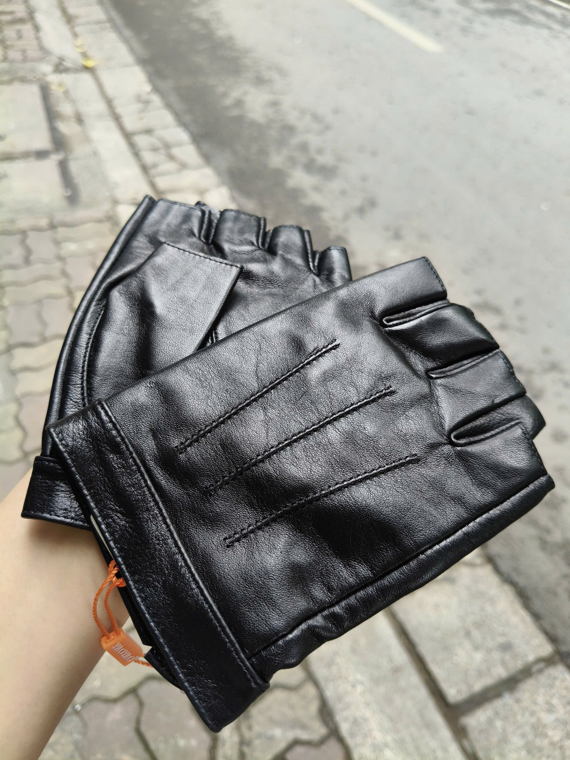 Găng tay nam hở ngón - BHY5293 Bao da phượt. Chuẩn da cừu. Size M L XL