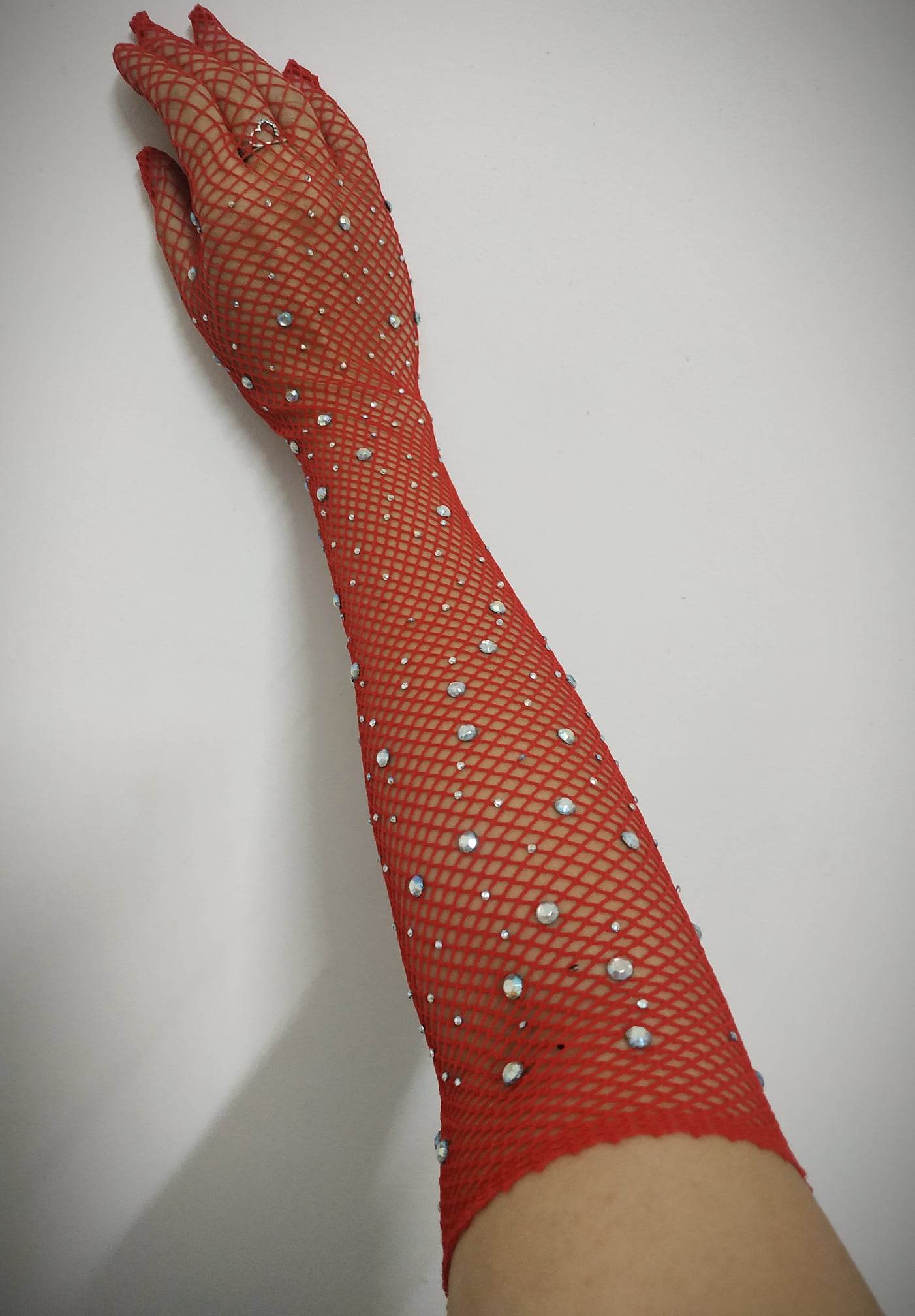 ✨Găng tay sang chảnh màu đỏ dạng lưới đính đá lấp lánh cho Cô dâu và Dạ hội, đi tiệc, sự kiện, lễ hội, đạo cụ chụp ảnh, studio MS: 44839