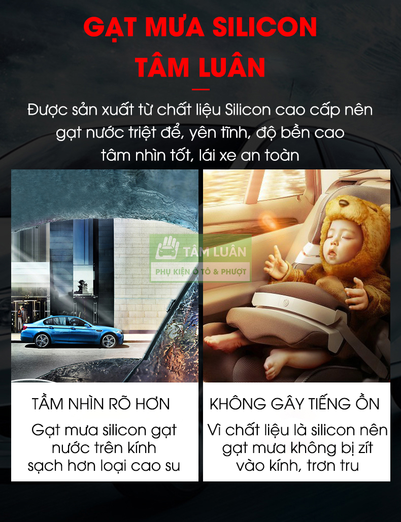 ✨Gạt mưa ô tô silicon Tâm Luân, KHÔNG XƯƠNG - Thân mềm, gạt sạch - không tiếng ồn - độ bền cao - không bị oxi hoá, độ bền lên đến 10 năm
