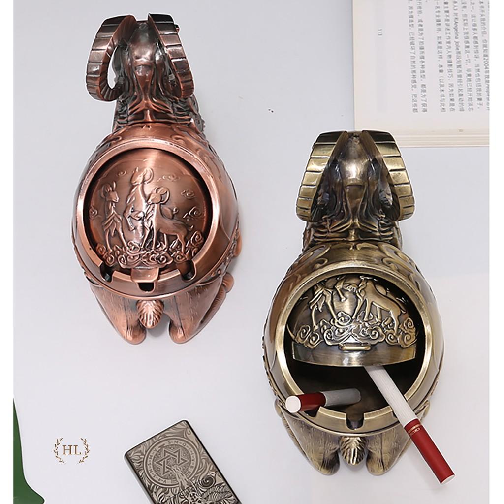 Gạt Tàn Thuốc bằng kim loại HÌNH DÊ Hoạ tiết chú DÊ ngộ nghĩnh Kích thước cao 15x9.13,5 cm Màu : Đồng đỏ