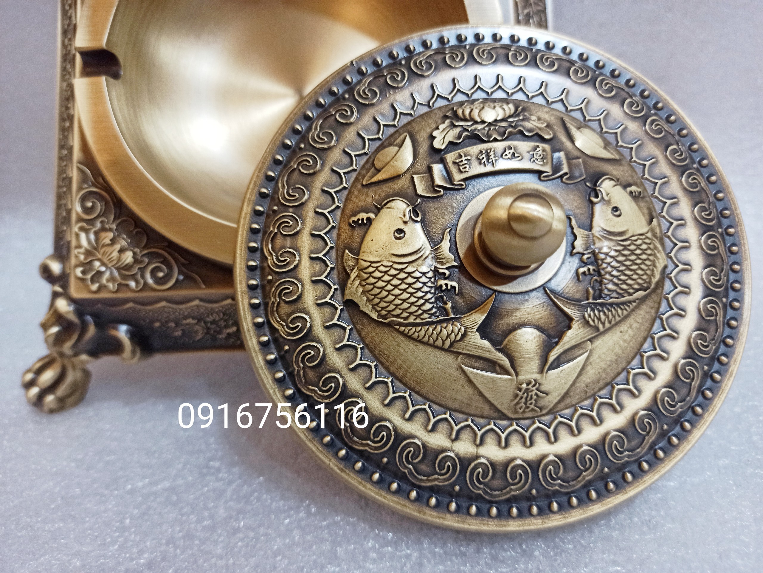 Gạt tàn thuốc lá bằng đồng hoa văn trống đồng đông sơn | Giá 1.800k - 0921400999